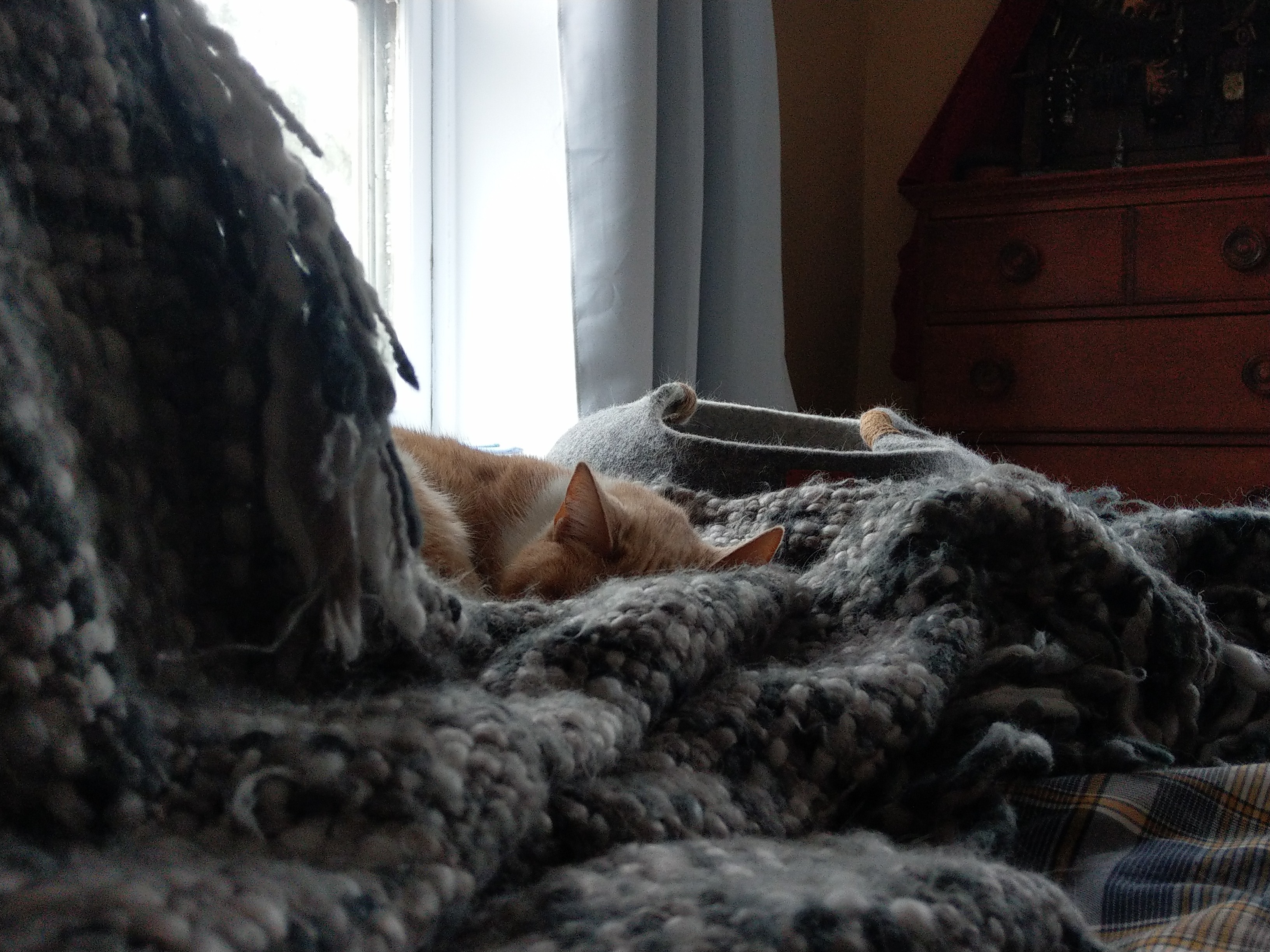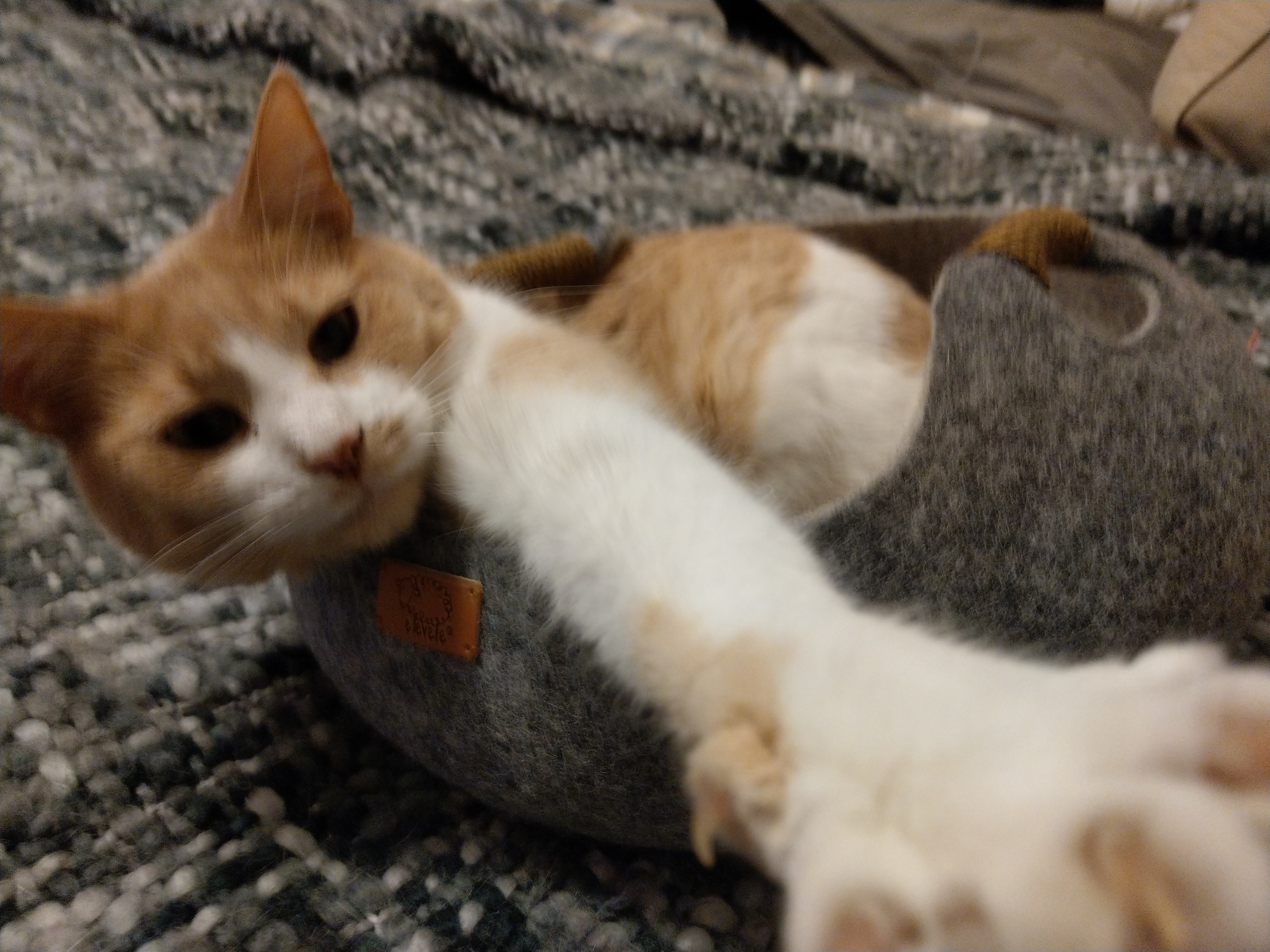 I tried to take a picture of her in her lil wool felt basket but she wasn't having it.