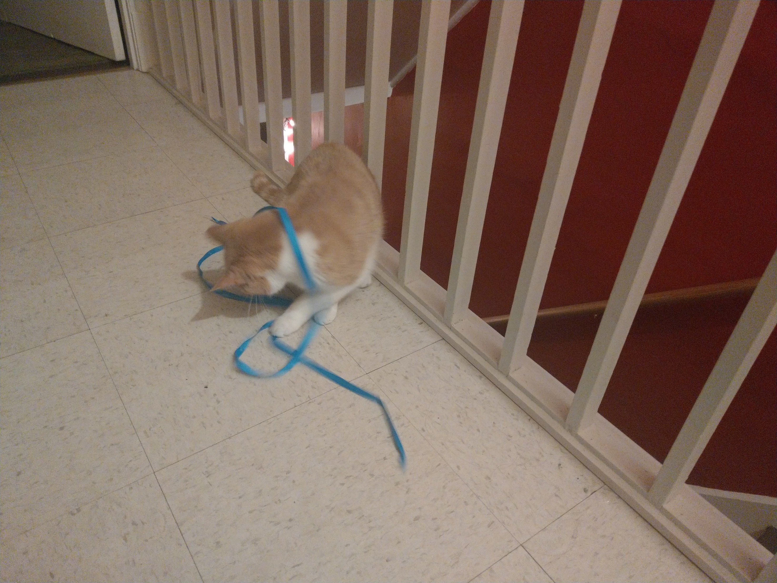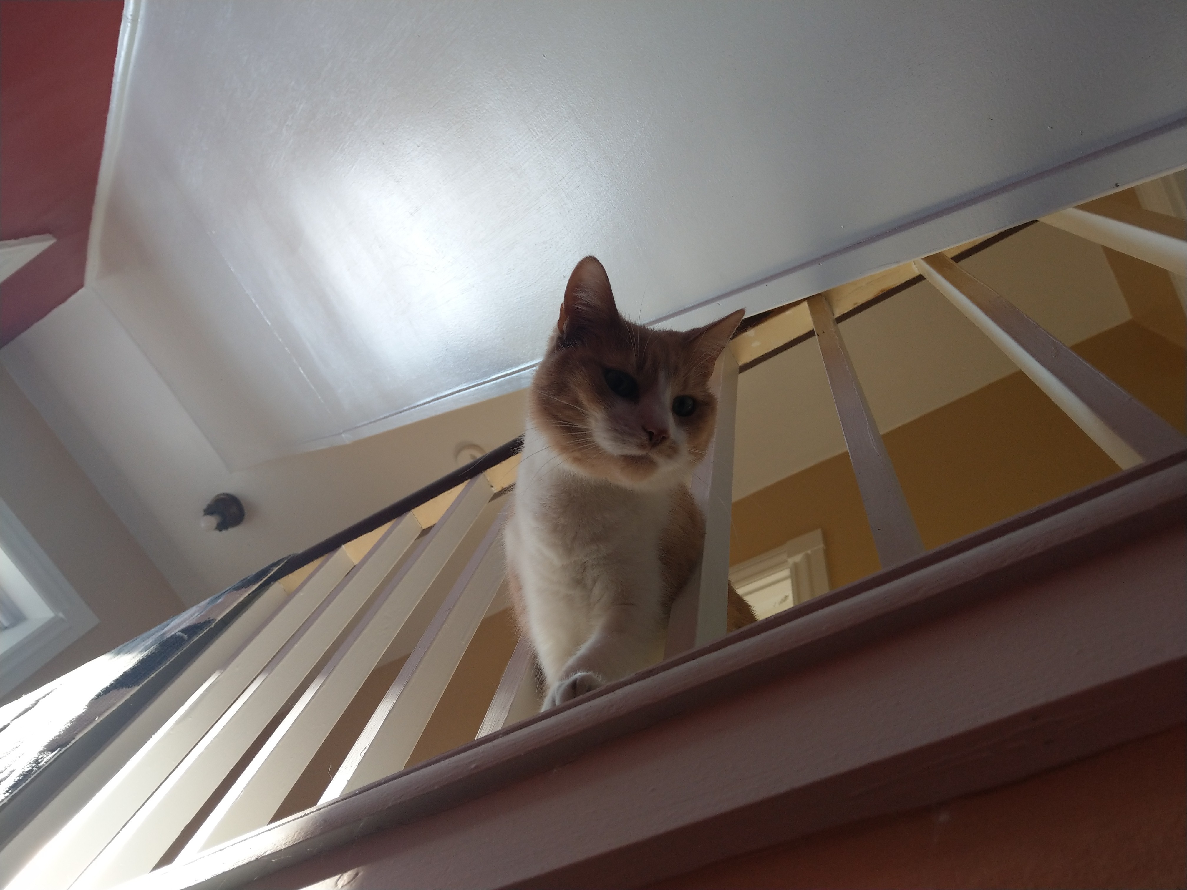 There's a hallway that runs along the staircase where we live now, and she loves it because she gets to be taller than me (and launch herself onto me when I pass.)