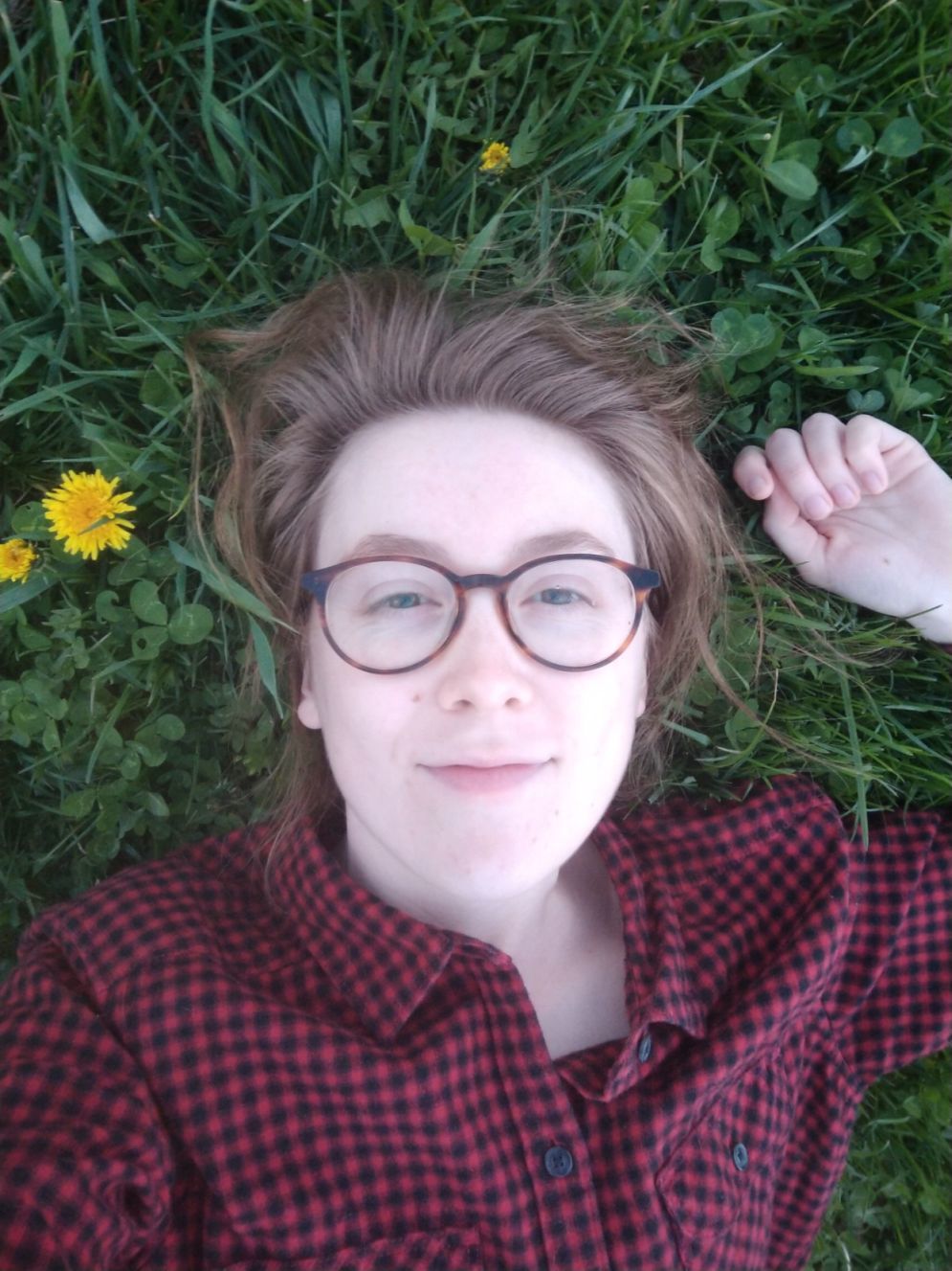 And now, since it's been a while, a selfie. Not sure if it's visible, but there are water droplets on my glasses. It was raining a bit. I plopped down in the grass in the rain because, look, it might be pandemicking out there, but it's still April and I'm still allowed to go outside (rural area, plenty of available socially-distanced grass) and goddammit I'm going to enjoy it. Anyway here's my face, goodnight everybody.